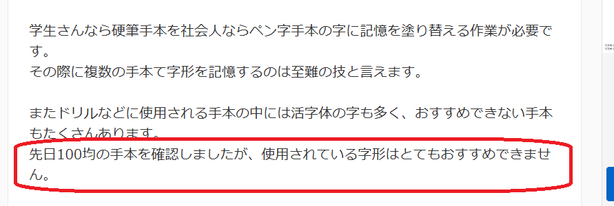 特に字体にこだわりはなかったので、たくさん売れていて高評価の練習本にしたという理由です。